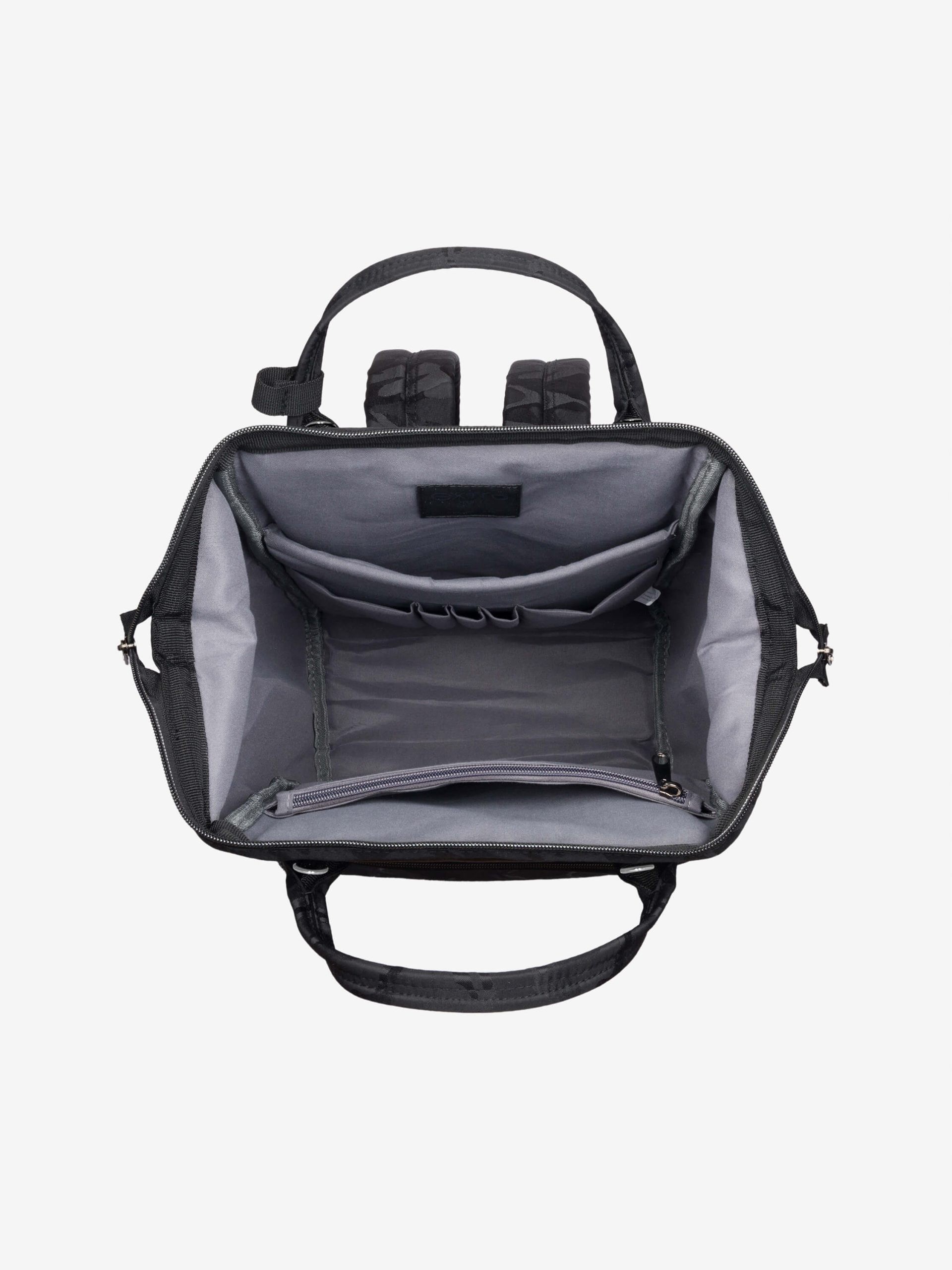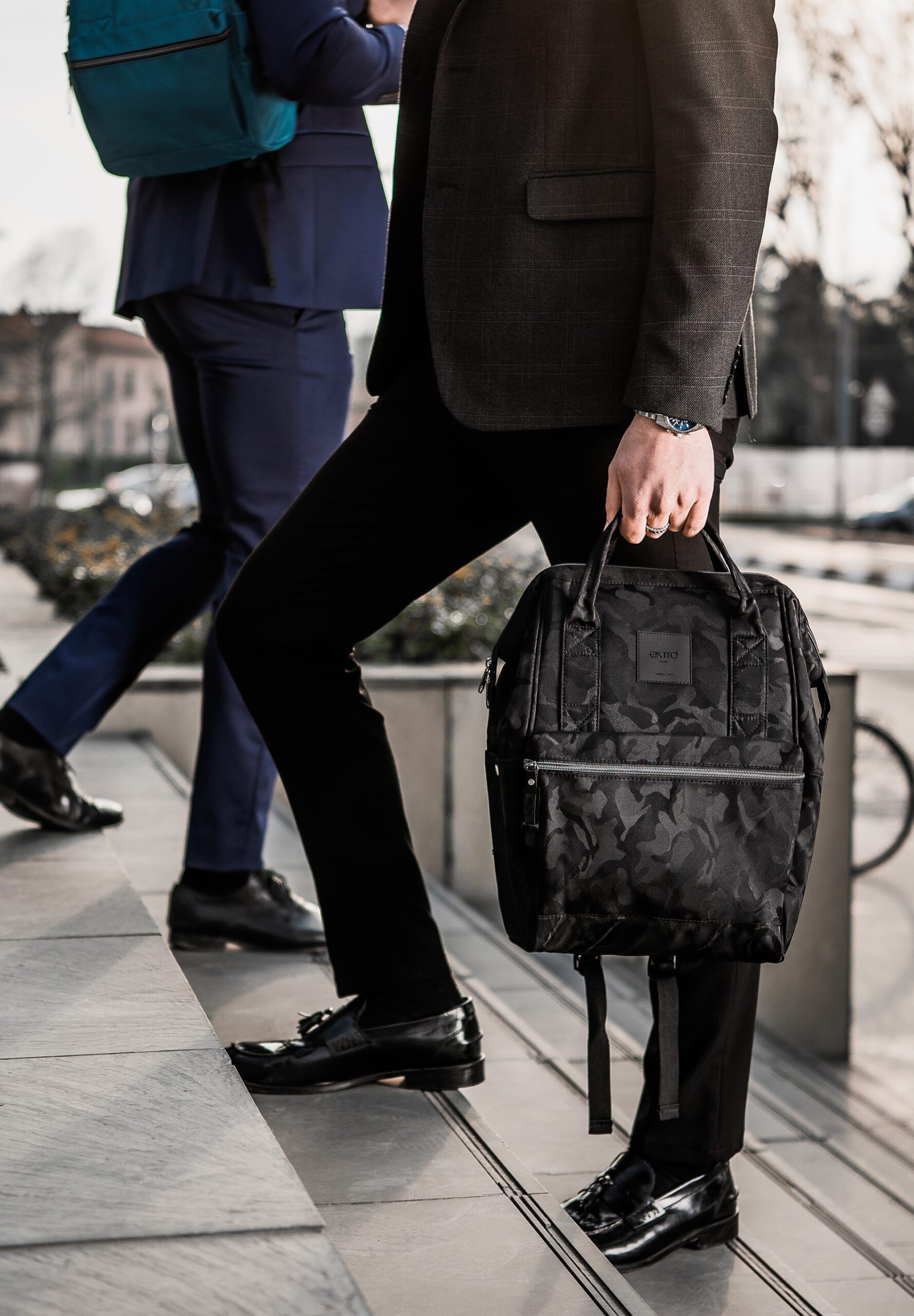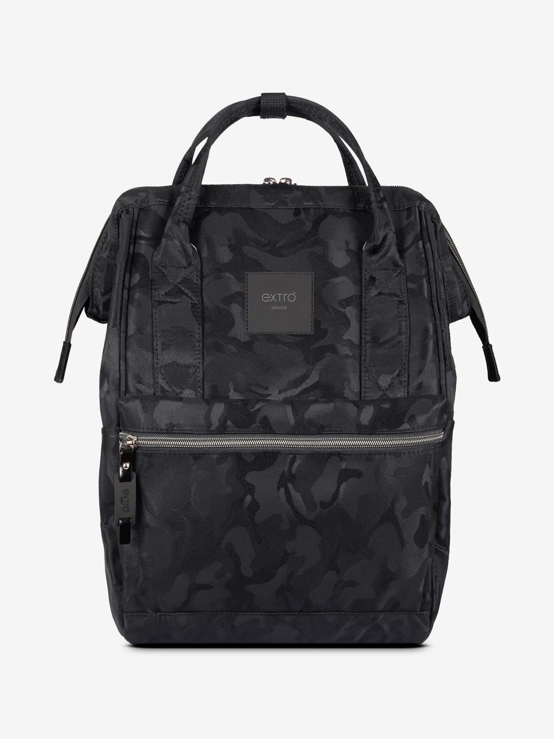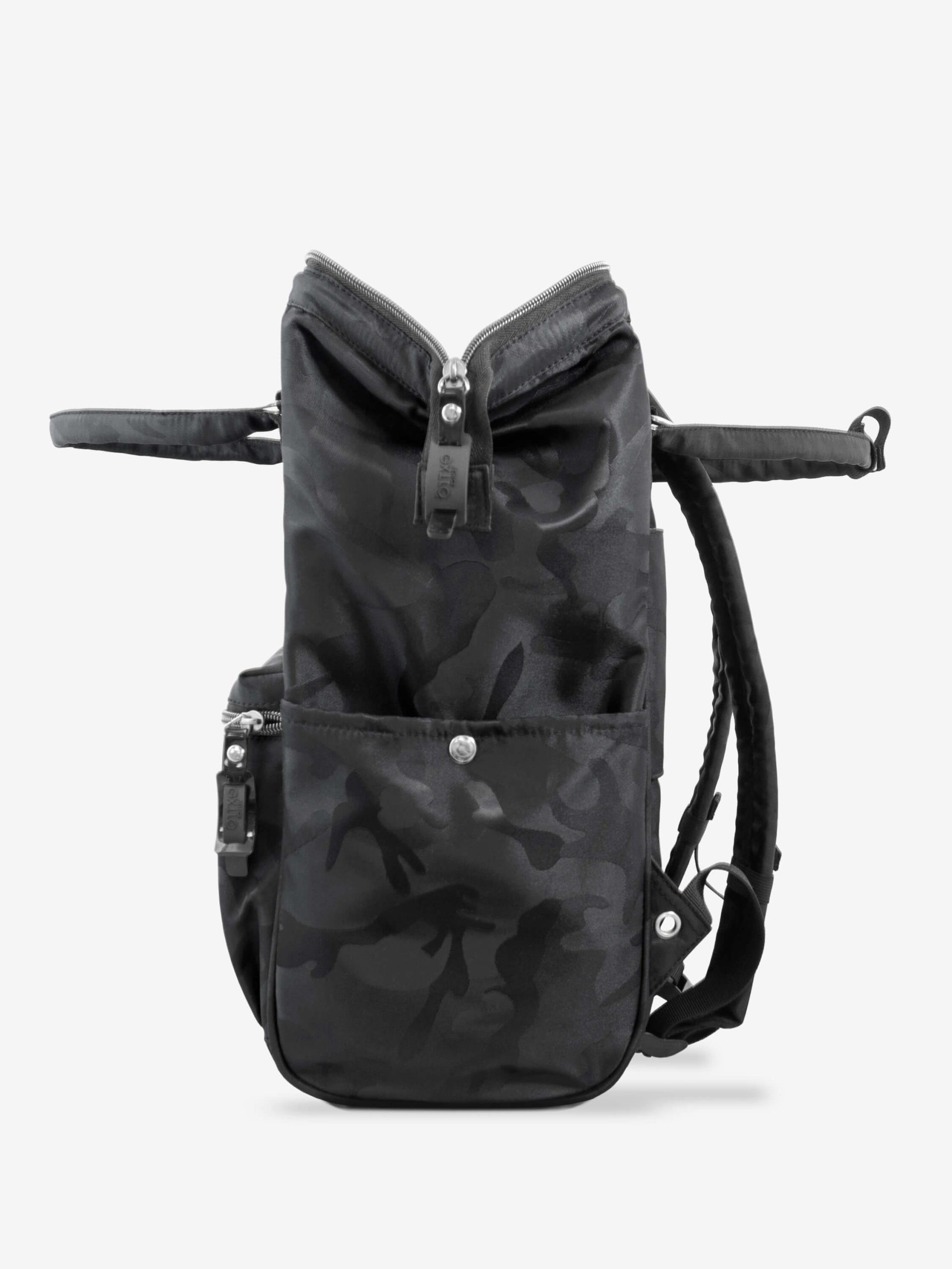 Con il suo look nero camouflage e il tessuto riciclato idrorepellente, Squero è la borsa zaino ideale per chi cerca stile, funzionalità e sostenibilità in un unico accessorio.