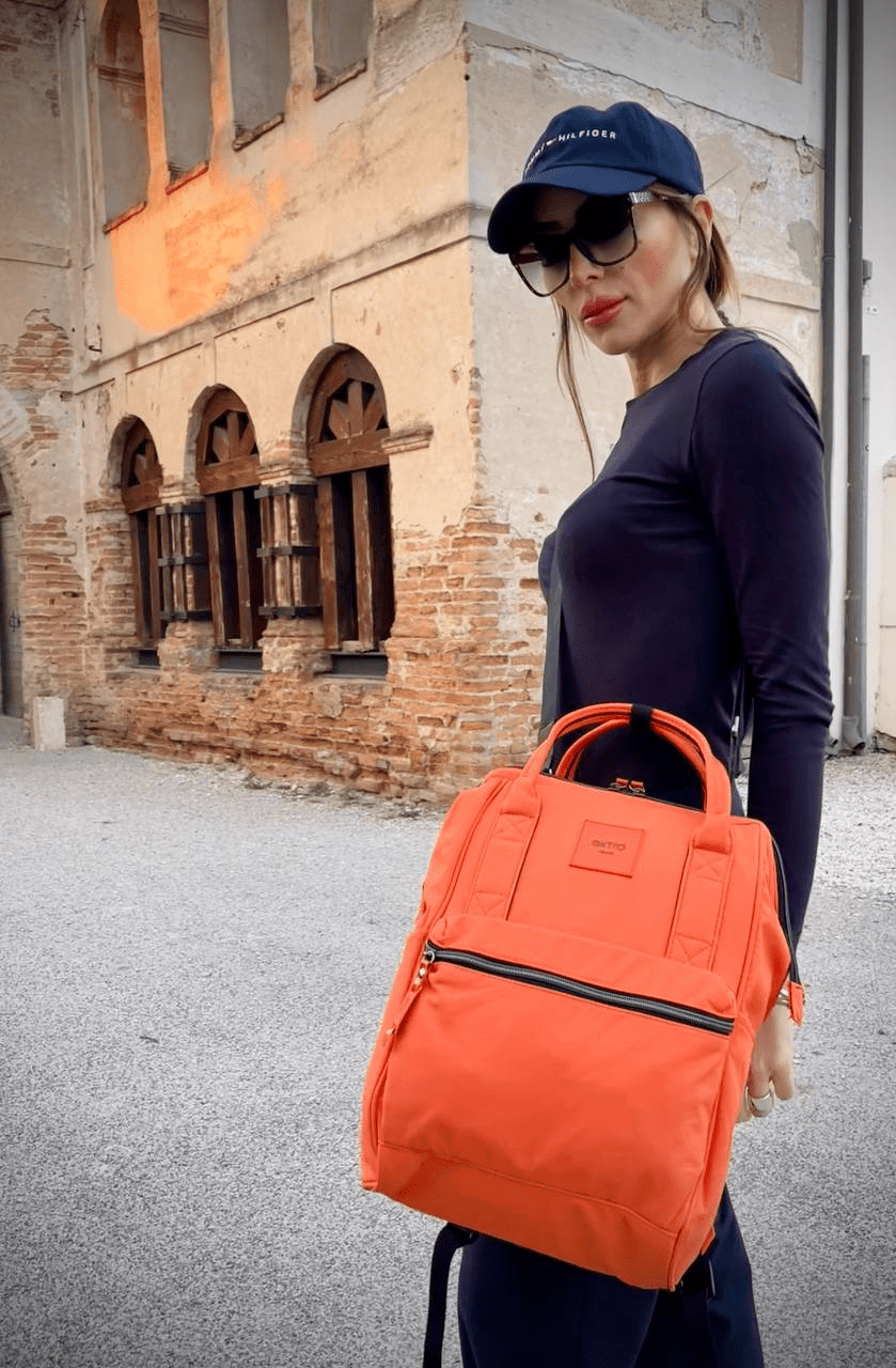 Funzionalità e stile si incontrano nella versione arancione di Calle, la borsa zaino trasformabile che accompagna ogni tua giornata con praticità e carattere.